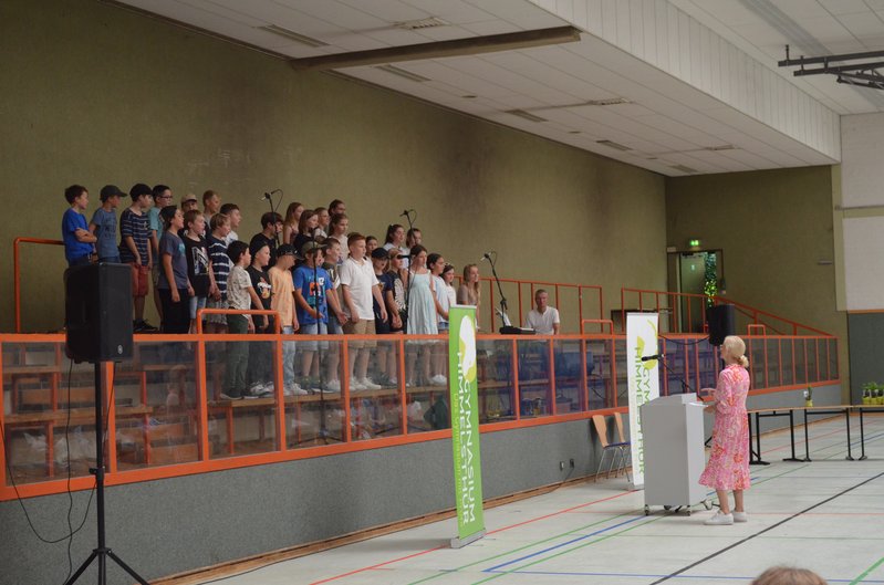 Die Feier wurde von den Schülerinnen des Musik-Kreativprofils unter der Leitung von Herrn Blohmer und von zwei der 6. Klassen unter der Leitung von Frau Schinzel musikalisch begleitet.