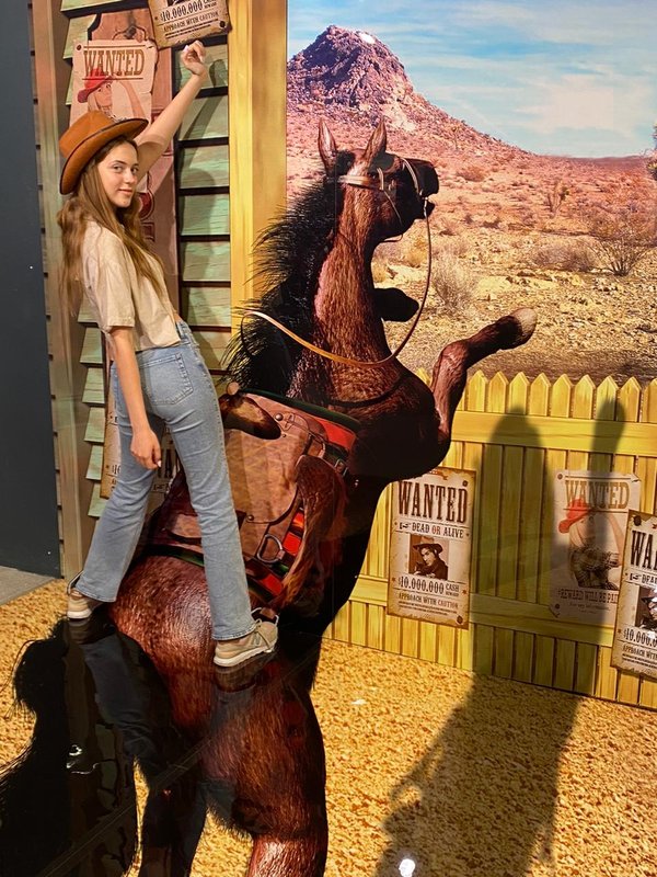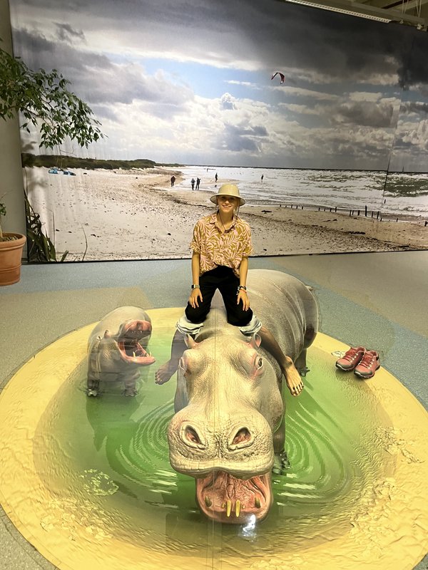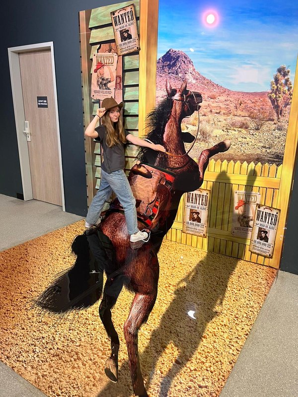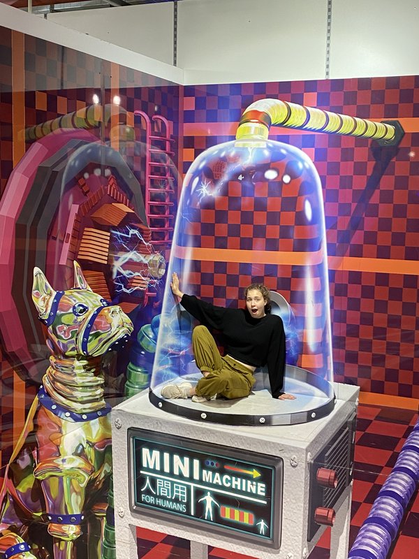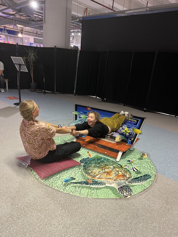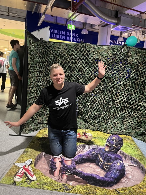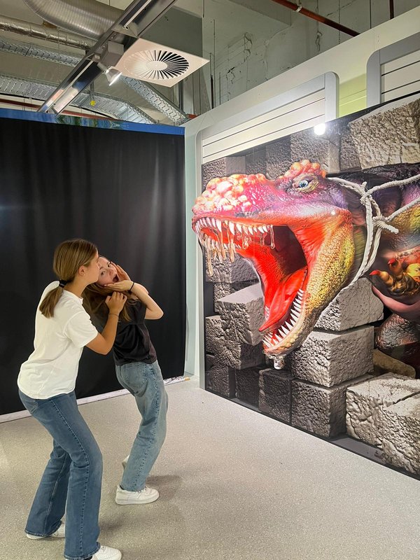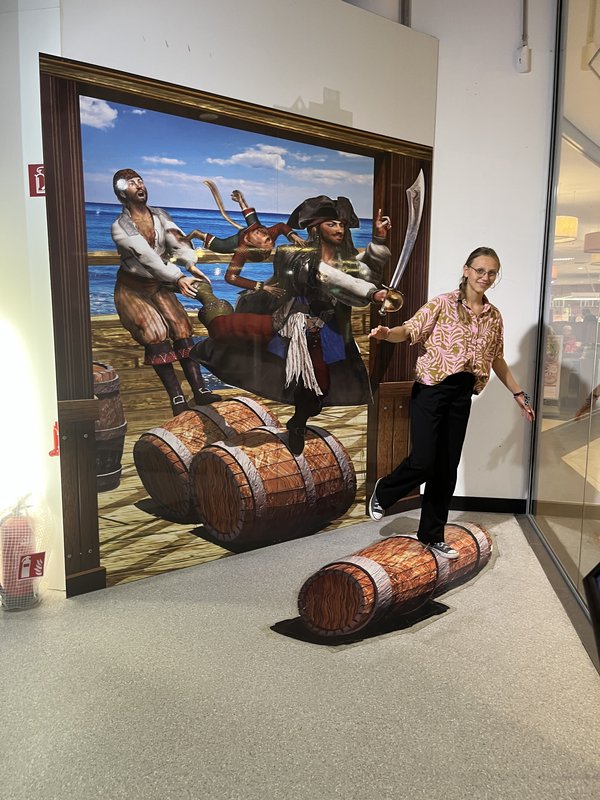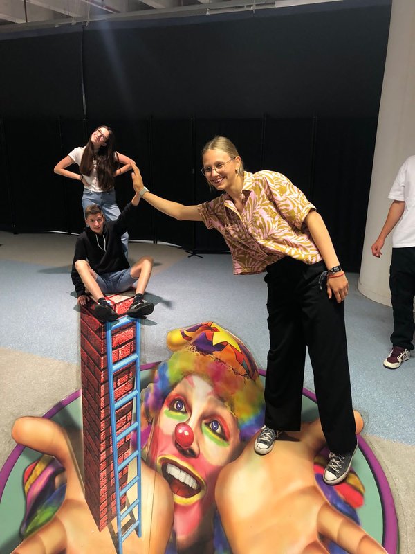 Begleitet haben uns Frau Kuhl, Frau Dinges und Herr Huge. Wir haben uns alle zusammen an der Schule getroffen, um dann um 8 Uhr mit einem Reisebus zur etwa 2-stündigen Fahrt aufzubrechen. Alle waren sehr gücklich, als wir endlich in Hamburg angekommen waren und uns in kleinen Gruppen in der “Hamburger Meile” umschauen konnten. Um 12:30 Uhr hat sich unsere Klasse vor dem Mindways 3D Trick Art Museum getroffen, das komplett aus einer Ausstellung des Künstlers Masashi Hattori besteht. Bevor wir uns die Ausstellung angeguckt haben, konnten wir uns einen 10-minütigen Vortrag über künstliche Intelligenz anhören, bis wir dann in die Ausstellung gegangen sind. Die Kunstwerke waren Kulissen, die durch bestimmte Perspektiven realistisch wirkten. Alles war so gemacht, dass man selbst ein Teil der Kunstwerke werden konnte. Wir haben dann in kleineren Gruppen viele Fotos gemacht.
