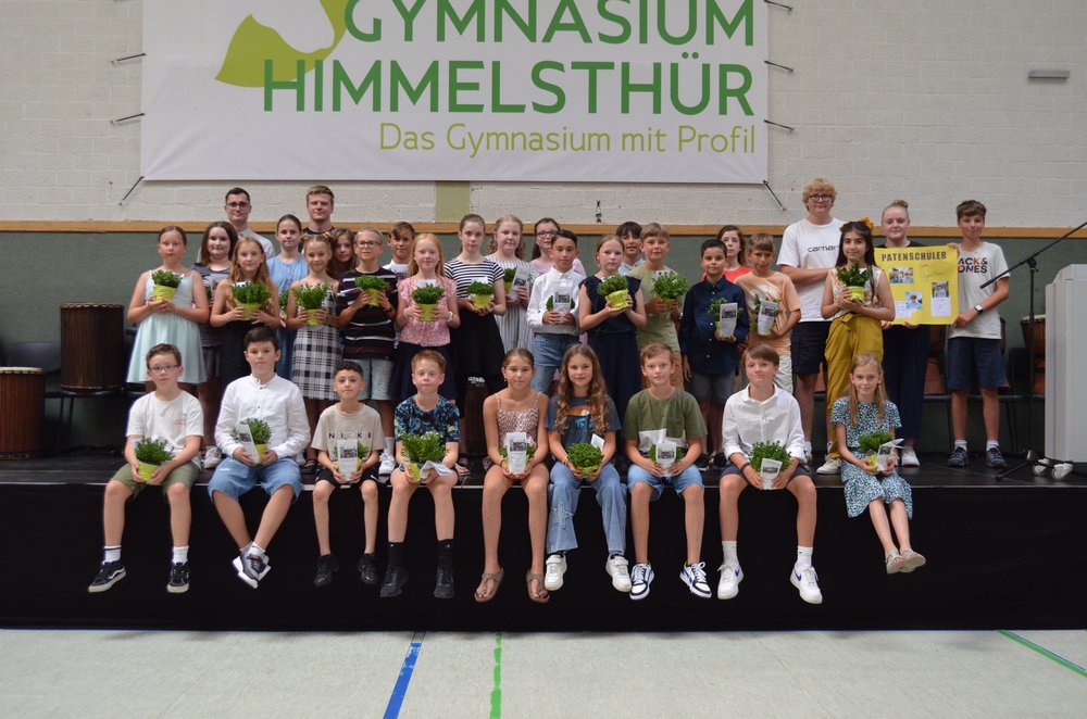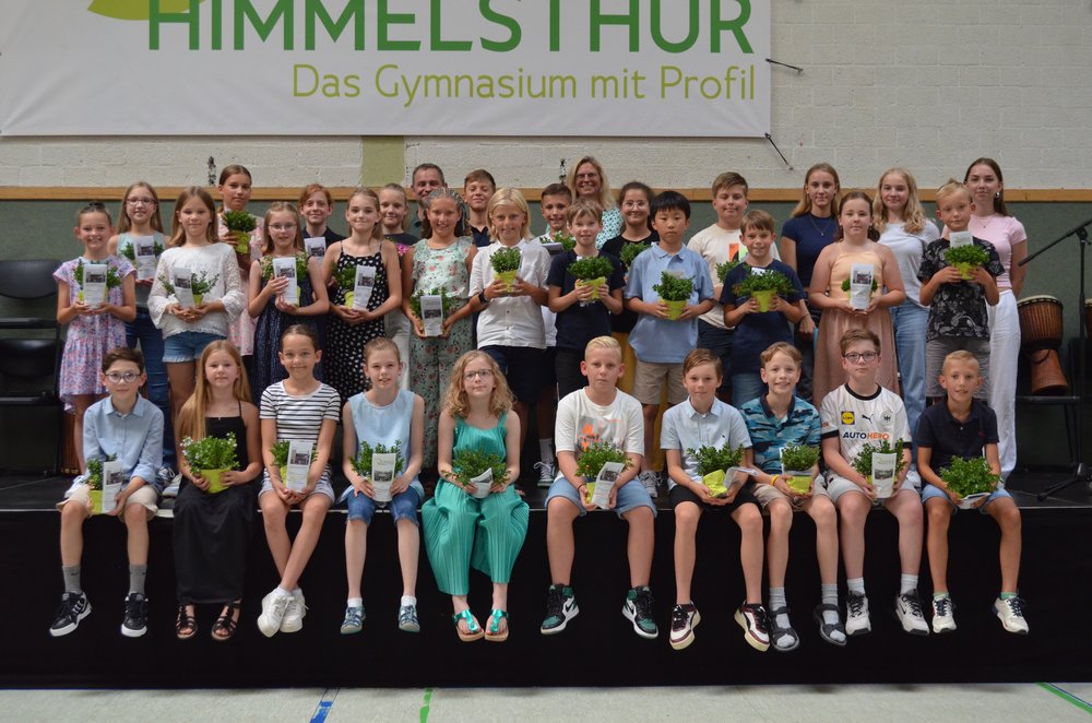 Der Tradition gemäß bekamen unsere Jüngsten dann von ihren Patenschülerinnen und Patenschülern ihre eigene kleine Pflanze als Symbol für das Leben und das Lernen zur Pflege überreicht. Wie in jedem Jahr schloss die Einschulungsfeier mit der Klassenleitungsstunde. Die Schulgemeinschaft des Gymnasiums Himmelsthür wünscht ihren jüngsten Mitgliedern eine erfolgreiche und schöne Schulzeit an unserer Schule.