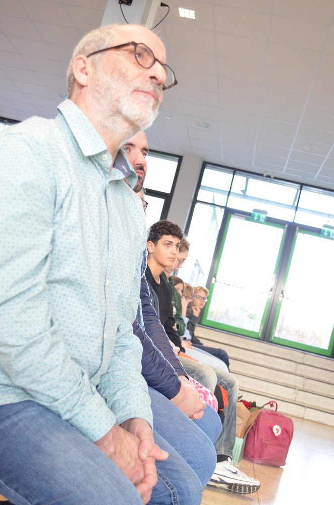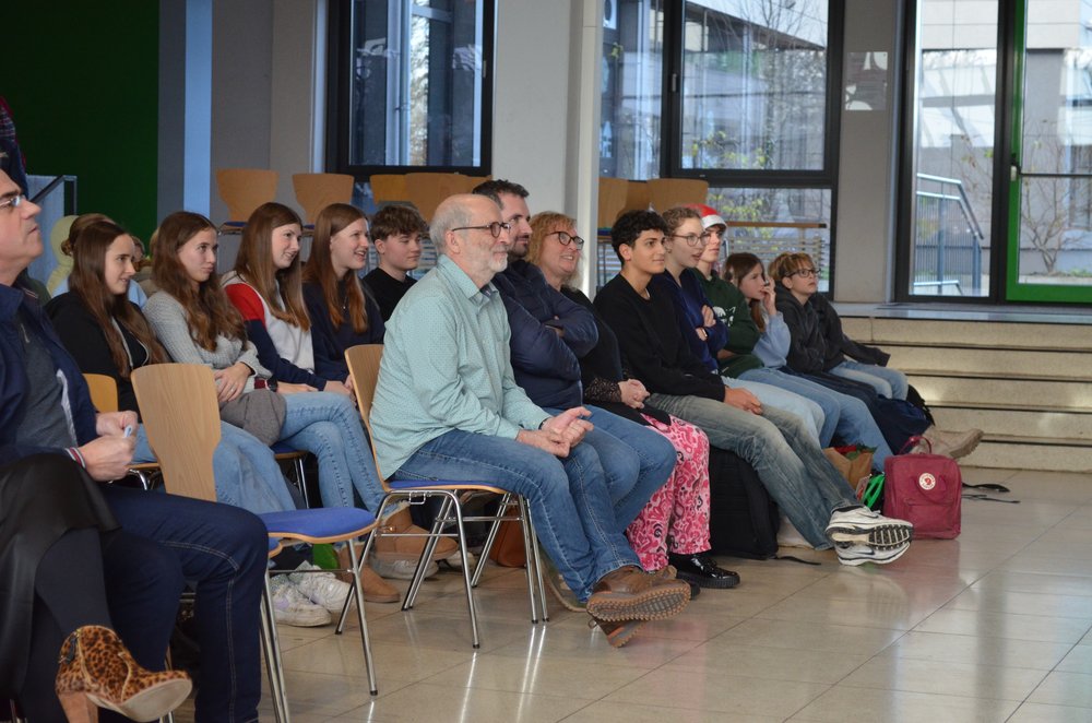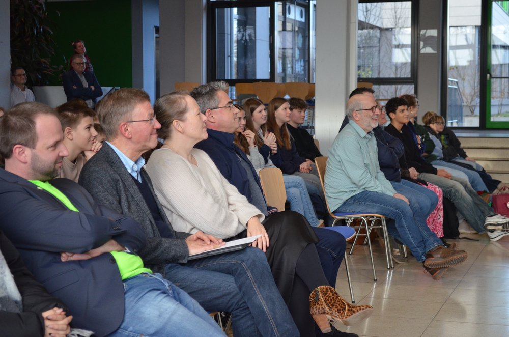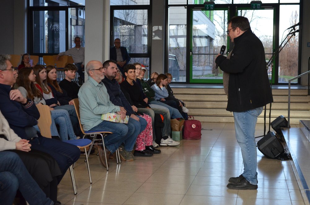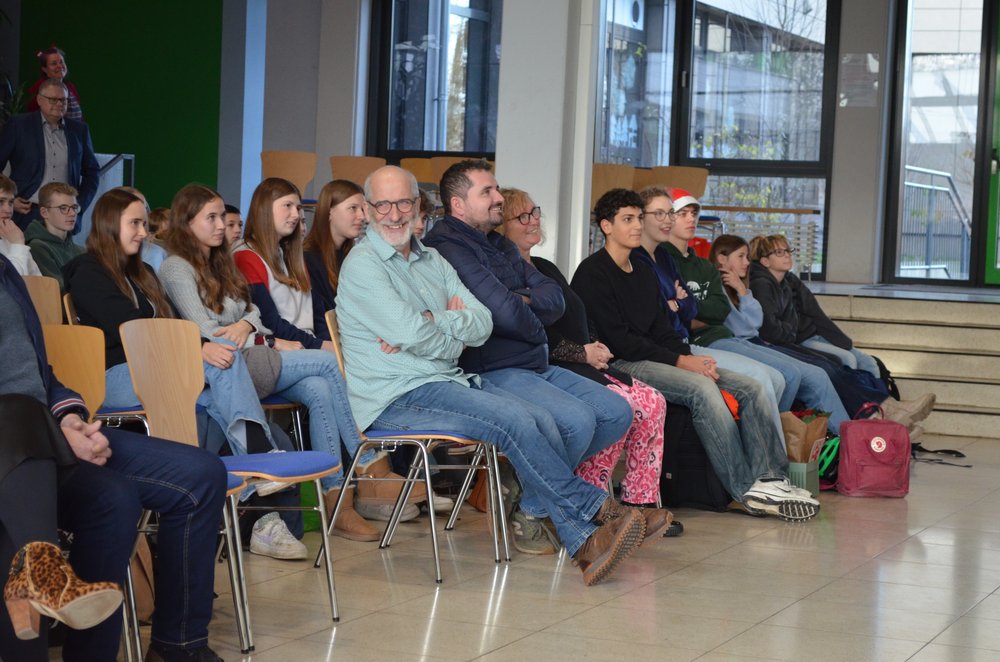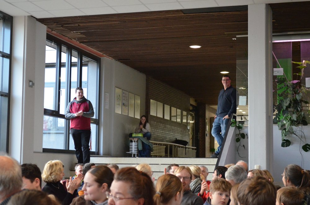 Nach der Würdigung und Danksagung durch die Schulleitung und einem humorvollen Video-Beitrag der „Fohlos“ bedankten sich u.a. Herr Wanjura für den Personalrat sowie Elternvertreter, Vertreter des Fördervereins und mehrere Vertreter aus der Schülerschaft bei Thomas Habenicht für seine geleistete Arbeit in all den Jahren. Dabei wurden besonders seine stets positive, humorvolle, ruhige und dem Menschen zugewandte Art sowie seine kreativen Problemlösungen in Erinnerung gebracht und gelobt: Bei allen technischen Problemen im Unterrichtsalltag, die Lehrkräfte schnell überfordern können, konnten sie sich auf Thomas Habenicht verlassen: vor allem natürlich beim gefürchteten „Papierstau“ im Kopierer, bei einer defekten Lampe im Tageslichtprojektor, beim Bandsalat im Videorecorder, beim Aufbau des „Schätzchens“ oder bei der Schnellreparatur von Beamern an der Zimmerdecke… Die Liste mit kleineren und größeren Aufgaben, die er für die Schulgemeinschaft tagtäglich mit Sorgfalt erledigte, ist nahezu unendlich, Thomas Habenicht konnte jedoch auf seinen reichhaltigen Erfahrungsschatz zurückgreifen. Aber auch bei der Schulbuchausleihe, bei der Organisation der Elternsprechtage oder bei der Vorbereitung von Veranstaltungen an der Schule konnten wir stets darauf vertrauen, dass unser Herr Habenicht dafür sorgt, dass alles reibungslos funktioniert.