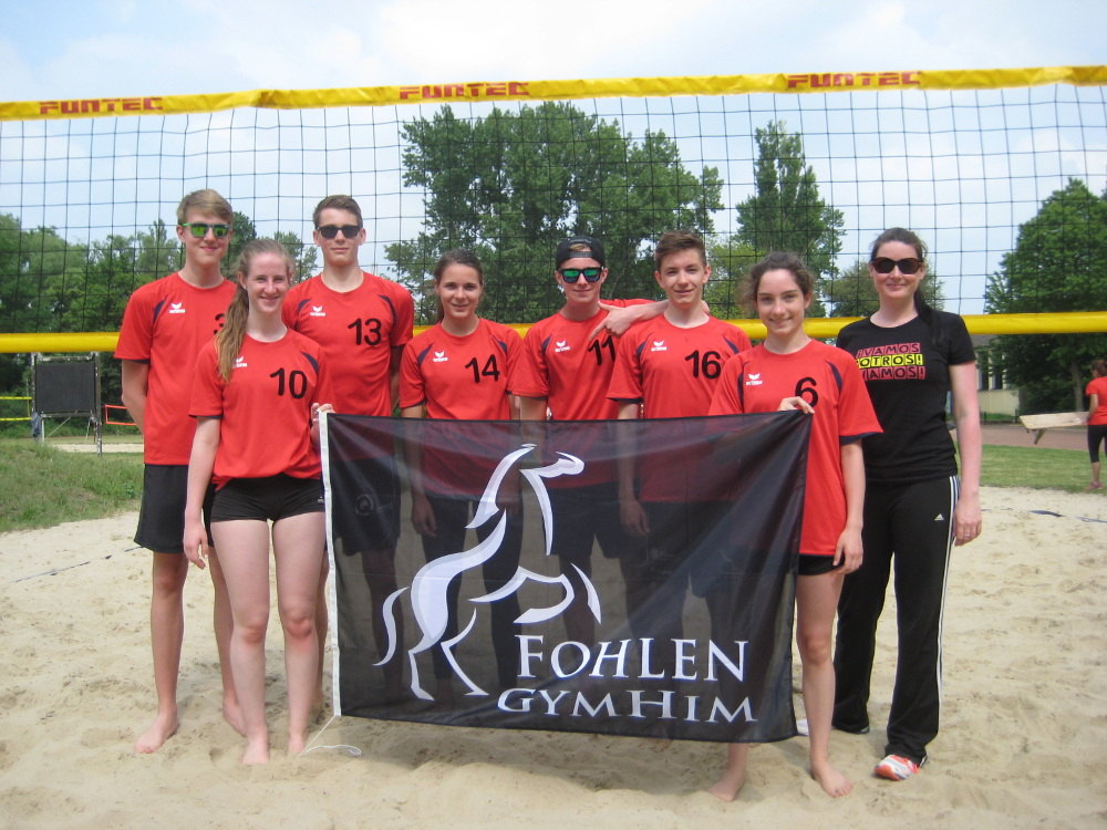 Am Donnerstag, den 26.Mai 2016 war es wieder soweit! Die Beach- Fohlen machten sich bei strahlendem Sonnenschein mit dem Zug nach Hannover auf, sich im Sand mit den anderen Schulen im Bezirk zu messen. Das Losglück war den Himmelsthürern nicht hold. Mit der KGS Sehnde hatten sie einen schweren Gruppengegner in der Vorrunde erwischt. Diese sollten auch gleich ihr erster Gegner sein. Bekanntermaßen brauchen die Beacher einen Moment um in das Turnier zu kommen, auch diesmal! Nach mehrmaliger Aufholjagd hieß es am Ende leider 28:30. Einige Matchbälle konnten nicht verwertet werden, so dass der Druck größer wurde. Jetzt mussten sie die restlichen beiden Spiele gewinnen und das taten sie auch. Sowohl gegen Bismarckschule Hannover (25:10), als auch gegen die Schillerschule aus Hameln (25:12) gewannen sie souverän und dominierten die spiele klar.