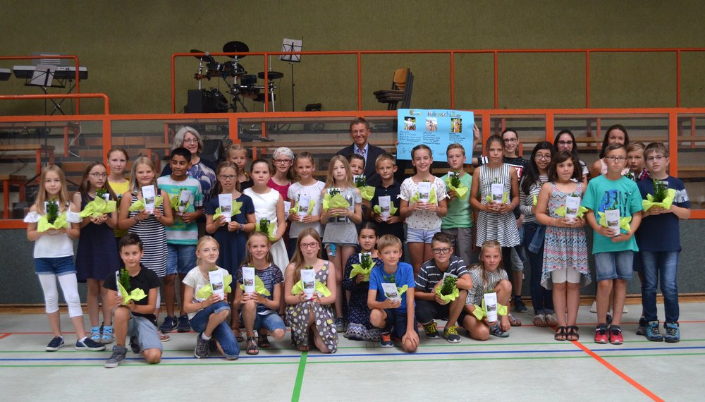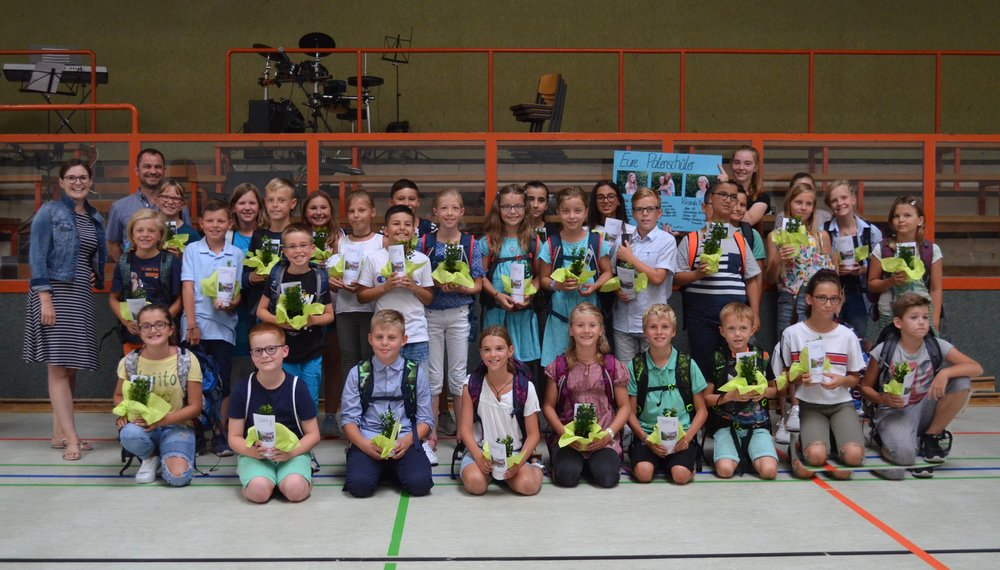 Der Tradition gemäß bekamen unsere Jüngsten von ihren Patenschülerinnen und - schülern ihren eigenen kleinen Buchsbaum als Symbol für das Leben und das Lernen zur Pflege überreicht.