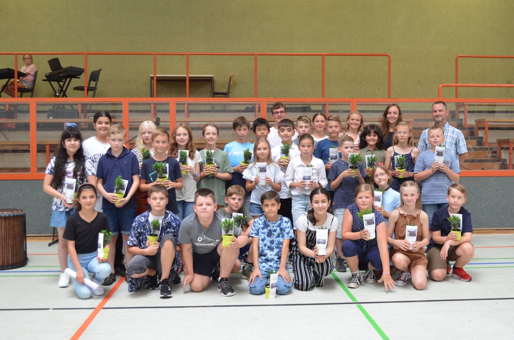Der Tradition gemäß bekamen unsere Jüngsten dann von ihren Patenschülerinnen und Patenschülern ihren eigenen kleinen Buchsbaum als Symbol für das Leben und das Lernen zur Pflege überreicht. Wie in jedem Jahr schloss die Einschulungsfeier mit der Klassenleitungsstunde. Die Schulgemeinschaft des Gymnasiums Himmelsthür wünscht ihren jüngsten Mitgliedern eine erfolgreiche und schöne Schulzeit an unserer Schule.
