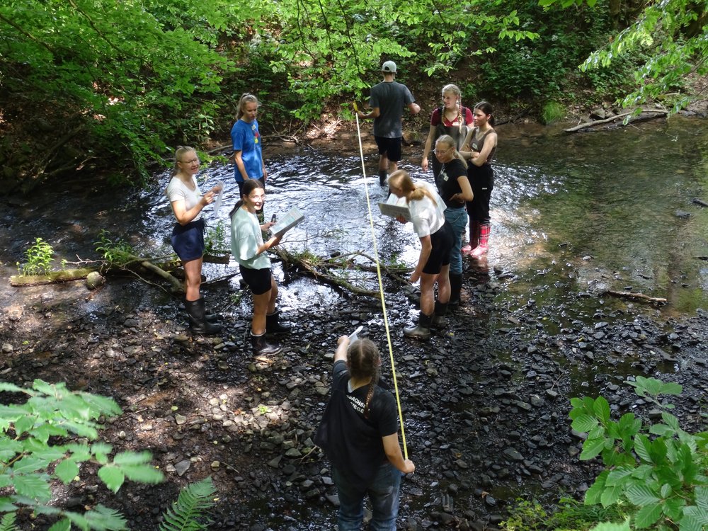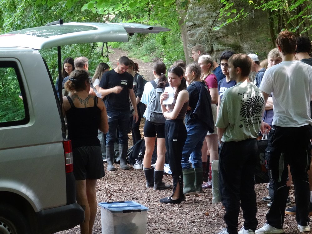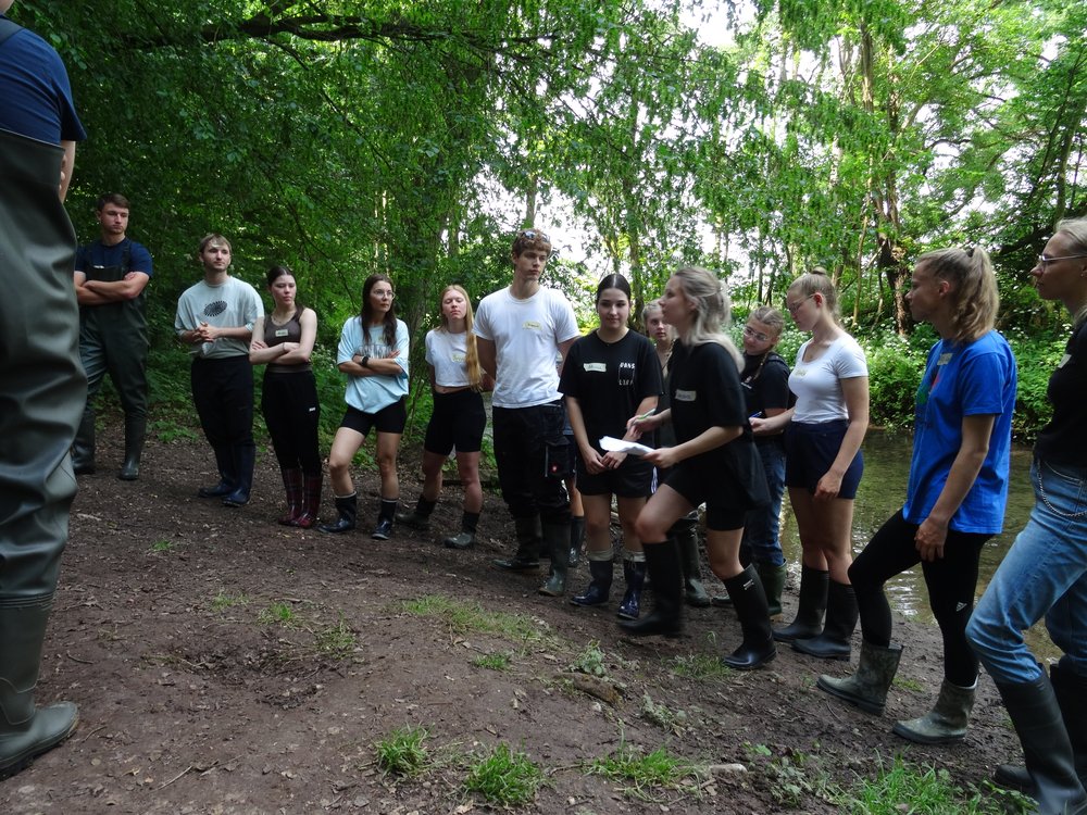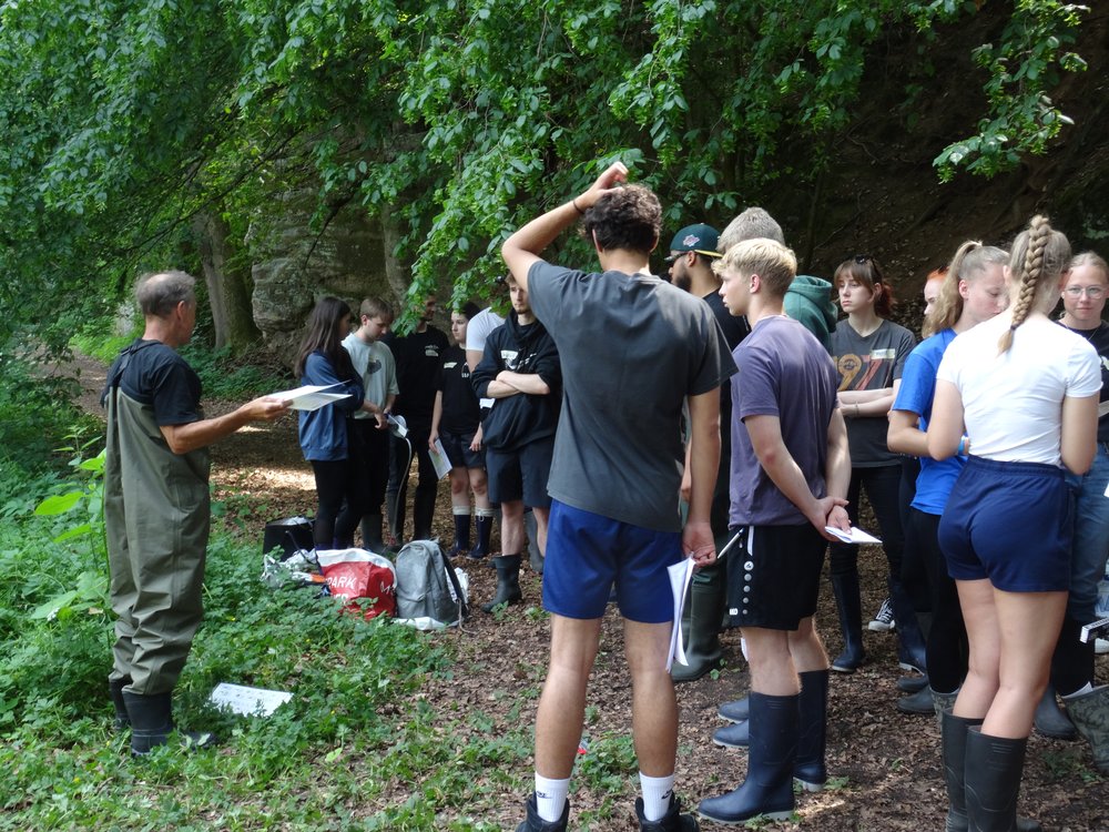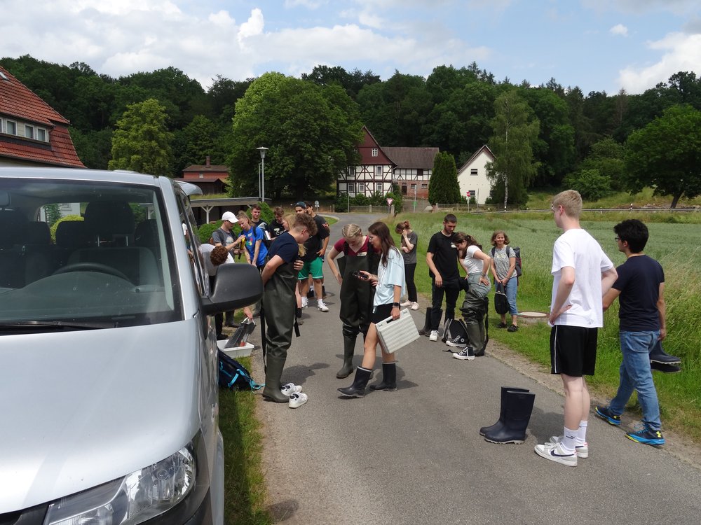 Am 19.06.2023 startete die gemeinsame Exkursion der beiden Biologie-Leistungskurse von Frau Jankofsky und Herrn Willemsen. Mit dem Reisebus fuhren wir nach Göttingen ins X-Lab, um dort an einem Kurs für die freilandökologischen Untersuchungen an einem Fließgewässer teilzunehmen. Unter der Betreuung von Diplombiologen und Ökologen wurden nach einer Vorbesprechung im Labor zwei verschiedene Gewässerabschnitte aufgesucht. An einem naturnahen Abschnitt eines Mittelgebirgsbaches und an einem Abschnitt desselben Gewässers, der stark durch den Menschen beeinflusst wurde, konnten wir verschiedene Untersuchungen durchführen. Neben der Beobachtung der Gewässerstruktur (Bachbett, Ufergestaltung) wurden Fließgeschwindigkeiten, die Wasserwerte (Temperatur, Leitfähigkeit, pH-Wert, Sauerstoffgehalt) und natürlich auch Flora und Fauna untersucht. Dabei kamen Gummistiefel und Wathosen, Kescher und Insektennetze, Messgeräte und Probengläser zum Einsatz. Die gesammelten Proben und Daten wurden dann später im Labor ausgewertet, Tiere und Pflanzen bestimmt und so wurde insgesamt eine durch Profis angeleitete Bewertung der Gewässergüte vorgenommen.