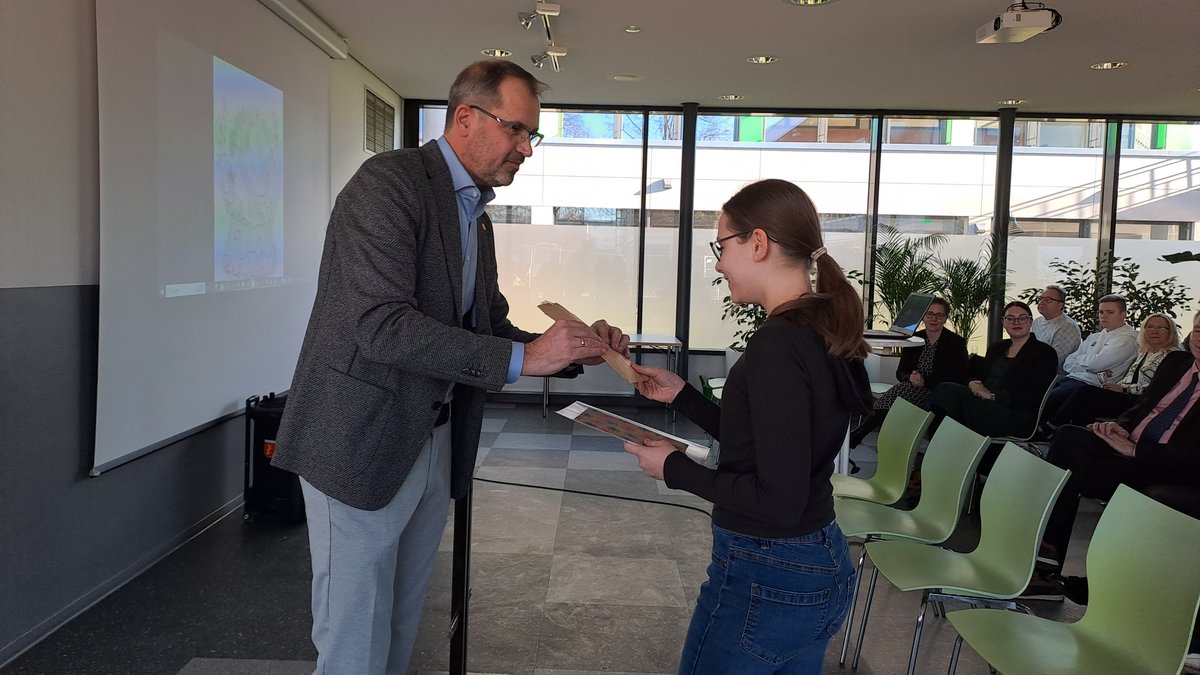 Die Preisverleihung war integriert im Neujahrsempfang in Himmelsthür. Ortsbürgermeister Dr. Stock überreichte den Preis im Anschluss an seine Neujahrsansprache.