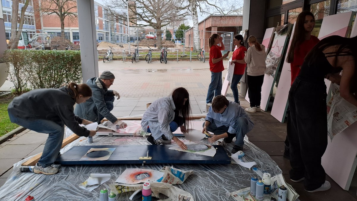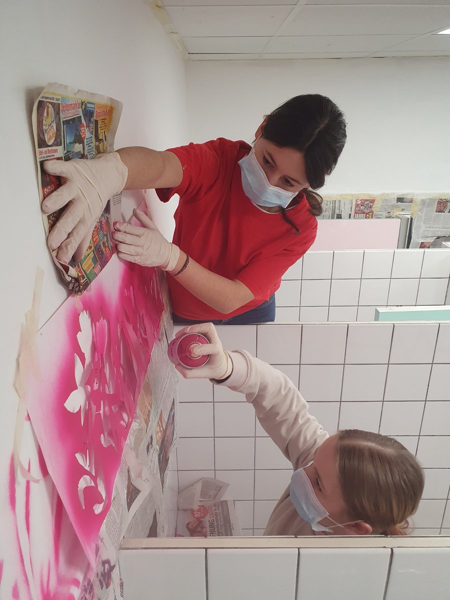 Auf Initiative von einigen Schülerinnen des 12. Jahrgangs wurde das Projekt zur Verschönerung der Toiletten angeboten. In einzelnen Gruppen gestalteten die teilnehmenden Schüler:innen nun die Mädchen- und Jungentopiletten im EG und 1. OG.