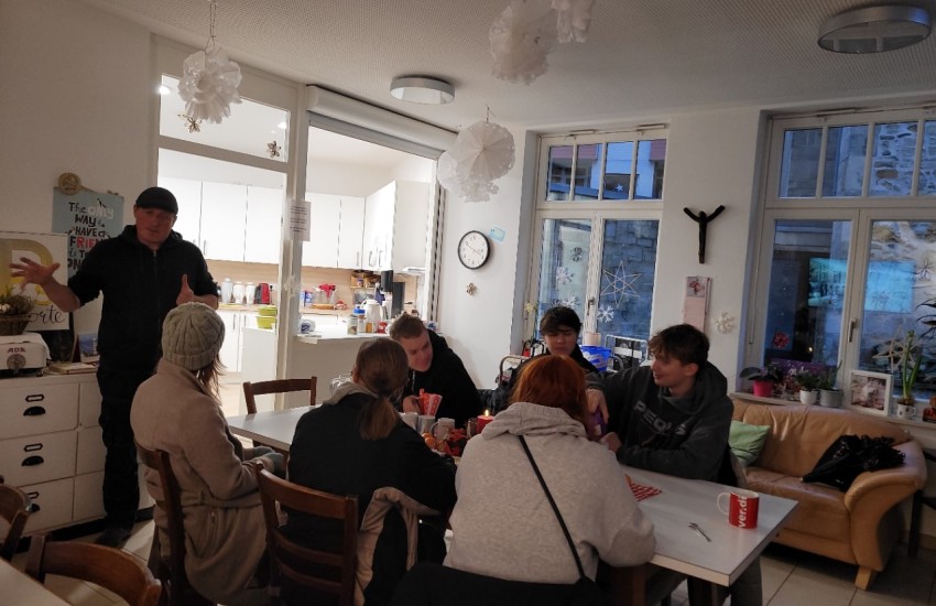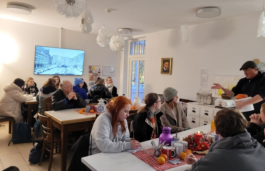 Die Führung endet in der Vinzenzpforte, die wochentags von 9 bis 14 Uhr geöffnet hat und deren Träger die katholischen Vinzentinerinnen sind. Bei Tee, Saft und Keksen tauscht sich der Kurs weiter angeregt über die Thematik aus.
