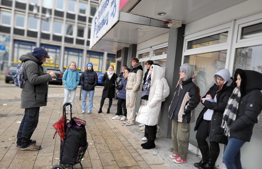 Am Dienstag, den 19. Februar 2024, nimmt unser damaliger Religionskurs des 13ten Jahrgangs mit Frau Wrede an einer Sozialen Stadtführung teil. Es soll darum gehen, Hildesheim aus der Sicht obdachloser Menschen kennenzulernen und damit aus einer neuen Perspektive zu betrachten. Streetworker und Sozialarbeiter Herr Engelbert von der Vinzenzpforte zeigt uns Schülern, wo und wie sich Hilfsbedürftige in Hildesheim orientieren können.