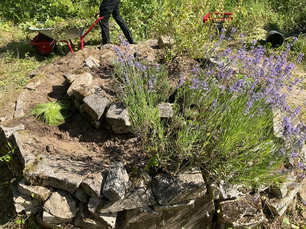 🌿 Die Kräuterspirale wurde entkrautet und neu bepflanzt – ein weiteres kleines Biotop im Biotop.