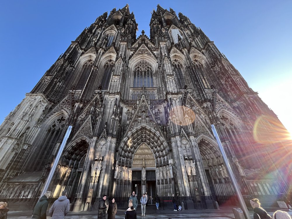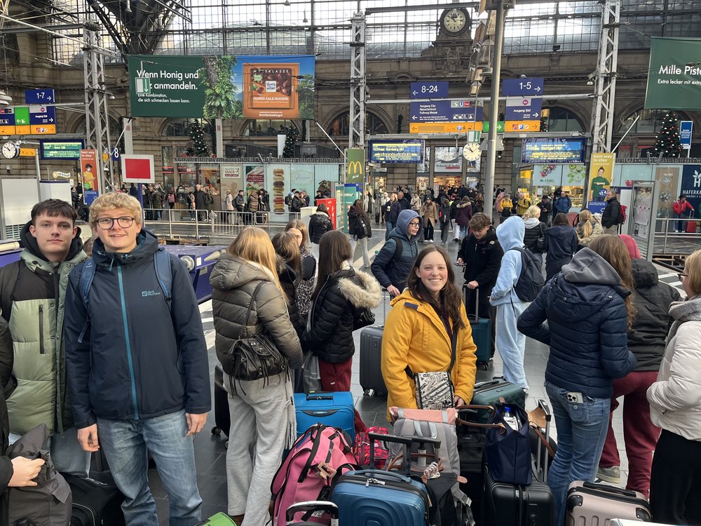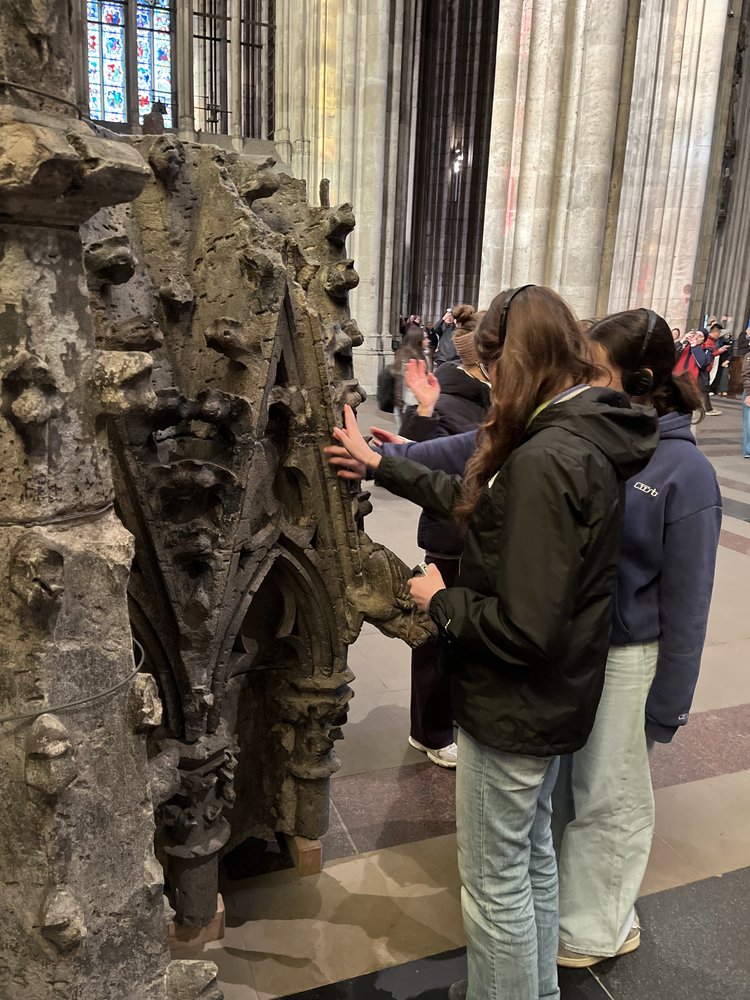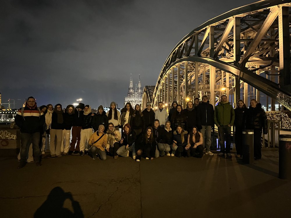 Vom 20. bis 22. November 2025 reiste das Gymnasium Himmelsthür mit 30 Schülerinnen und Schülern der Jahrgänge 9-12 mit der Bahn über Frankfurt in die Weltstadt Köln. Übernachtet wurde in der Deutzer Jugendherberge auf der rechten Seite des Rheins. Das frisch modernisierte Haus liegt verkehrsgünstig direkt neben dem Deutzer Bahnhof und Kölsch-günstig neben einem echten Kölner Original, dem Lommerzheim – was besonders Herrn Schilf positiv überraschte.