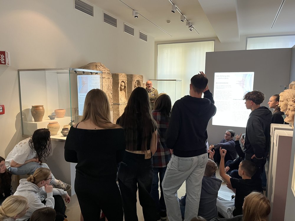Am Freitag ging es wieder zu Fuß bei strahlendem Sonnenschein über den Rhein in den Kölner Dom; danach gab es Freizeit zum Bummeln, ehe der Schwerpunkt auf das Römische Köln gelegt wurde. Mit einem Besuch der ausgelagerten Ausstellung des Römisch-Germanischen-Museums und einer Führung im unterirdischen Ubiermonument – einem alten Hafenturm, dessen 11m hohe Grundmauern erhalten sind und der als eines der ältesten Steinbauwerke nördlich der Alpen eine gewisse Relevanz besitzt – widmeten wir uns dem lateinischen Teil der Fahrt.
