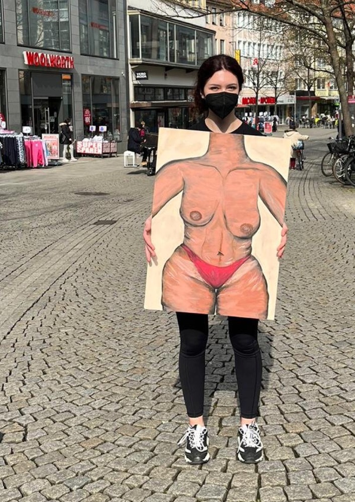 Jeder (Frauen-)Körper ist auf seine Art bemerkenswert. Dies zeigt Kristina Muraschkin, Schülerin des Gymnasiums Himmelsthür, im Rahmen ihrer Facharbeit eindrucksvoll anhand einer Performance in der Fussgängerzone in Hildesheim.