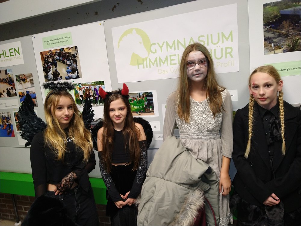 Zombies, Vampire, Monster und Gespenster: Sie alle waren Gast bei der ersten Fohlen-Halloween-Party nach der Corona-Pause am 3. November 2023. Das GymHim hatte eingeladen und mehr als hundert Schülerinnen und Schüler der fünften, sechsten und siebten Klassen kamen ab 18 Uhr an den Ort, an dem sie ansonsten Klassenarbeiten schreiben und Referate halten, um nun an gleicher Stelle gemeinsam zu feiern. Viele waren so hervorragend kostümiert, dass der ein oder andere Schreckensschrei durch die düstere Schule gellte. Dabei waren es vor allem die selbst hergestellten Kostüme, die aufwändigen Masken und geschminkten Fratzen, die dafür sorgten, dass es einem kalt den Rücken herunterlief.
