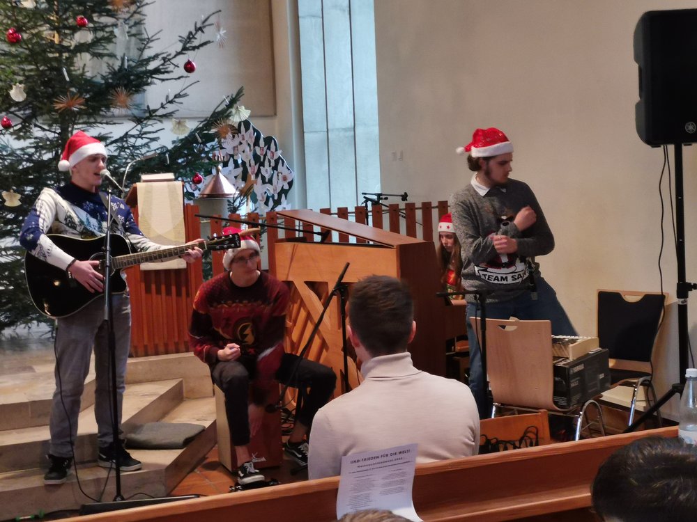Musikalisch verabschiedet wurden wir von der Oberstufenband mit „Last Christmas“ (Leitung: Lars Wichmann), die die Schulgemeinde sogar zum Tanzen brachte. Die Kollekte erbrachte gut 200 € für den Guten Hirt.