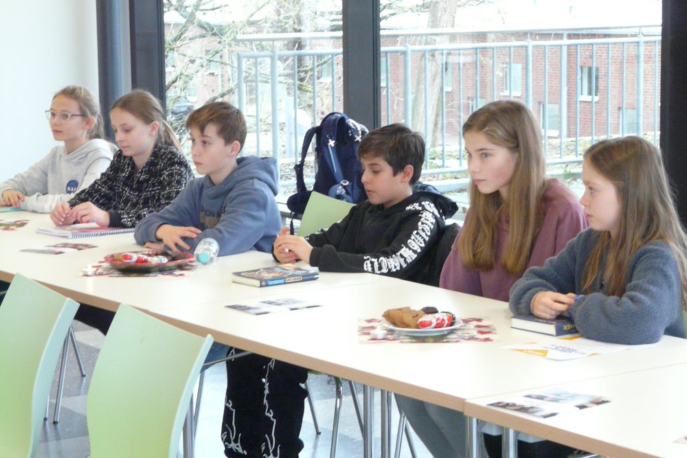 Im Wettbewerb der 6. Klassen traten Marieke Mesic und Maximilian Strützke (beide 6a), Zoe Aselmeier und Maximilian Gottschalt (6b), Greta Knabe und Ben Möhring (6c) sowie Emma Schökel und Deif Albarho (6d) an. Alle Schülerinnen und Schüler, die zuvor den Klassenentscheid gewonnen hatten, waren bestens vorbereitet und blieben cool. Die Bücherprofis schafften es, ihre Zuhörerinnen und Zuhörer durch hervorragendes Vorlesen in ihren Bann zu ziehen. Dabei wurde aus spannenden Fantasyromanen, lustigen Familiengeschichten und sogar aus einem historischen Krimi aus der Zeit der alten Römer vorgelesen. Der Jury fiel es ganz schön schwer, einen Sieger zu ermitteln - doch nach 90 Minuten standen die Ergebnisse fest.