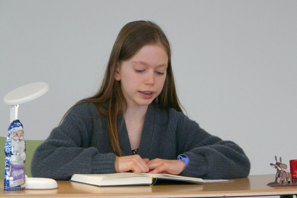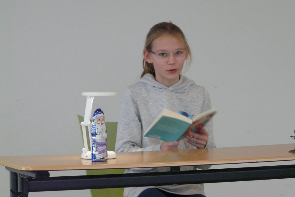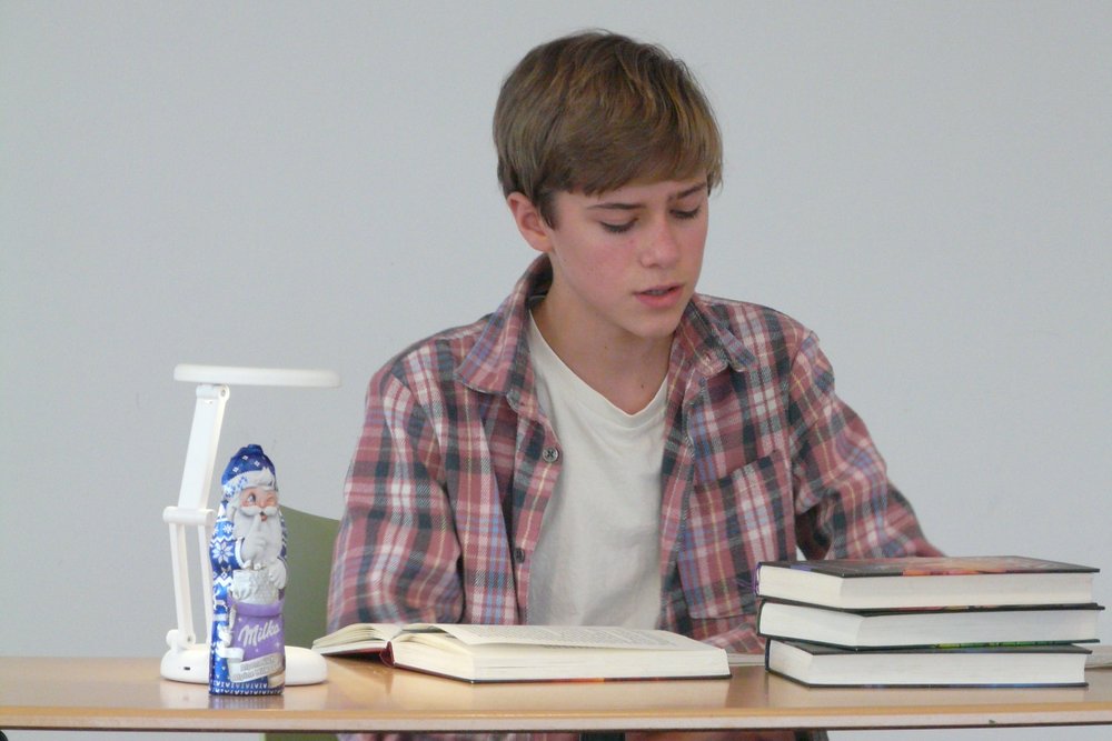 Dezember, Adventszeit, Lesezeit! - Am 14. Dezember fand der traditionelle Vorlesewettbewerb der 6. Klassen am GymHim statt. Die Klassenbesten stellten in vorweihnachtlicher Atmosphäre im Konferenzraum der Mensa ausgewählte Bücher in einem freien Vortrag vor und lasen dem Publikum minutenlang daraus vor. Unter den kritischen Blicken von Herrn Hübner und Herrn Buttler sowie Annika Zuske und Lea Töpperwien (zwei Schülerinnen aus dem Abiturjahrgang, die in diesem Jahr die Jury verstärkten) wurden dabei literarische Höchstleistungen gezeigt.
