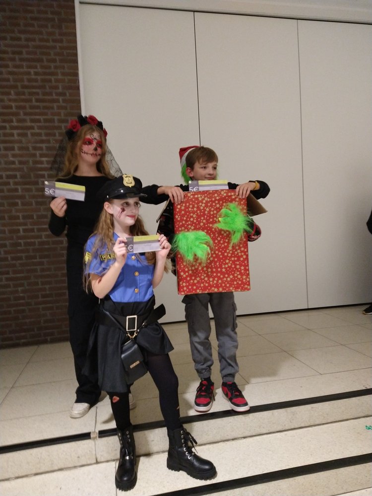 Dabei wurden … für ihre phantastischen Verkleidungen ausgezeichnet. Allerdings hätten auch noch etliche andere Aufmachungen Preise verdient gehabt. Gegen 20.30 Uhr endete die Horrorshow: Die letzten Gruselgestalten wurden von ihren Eltern abgeholt und stellten die Frage: "Gibt's nächstes Jahr wieder eine so schaurig-schöne Halloween-Party?"