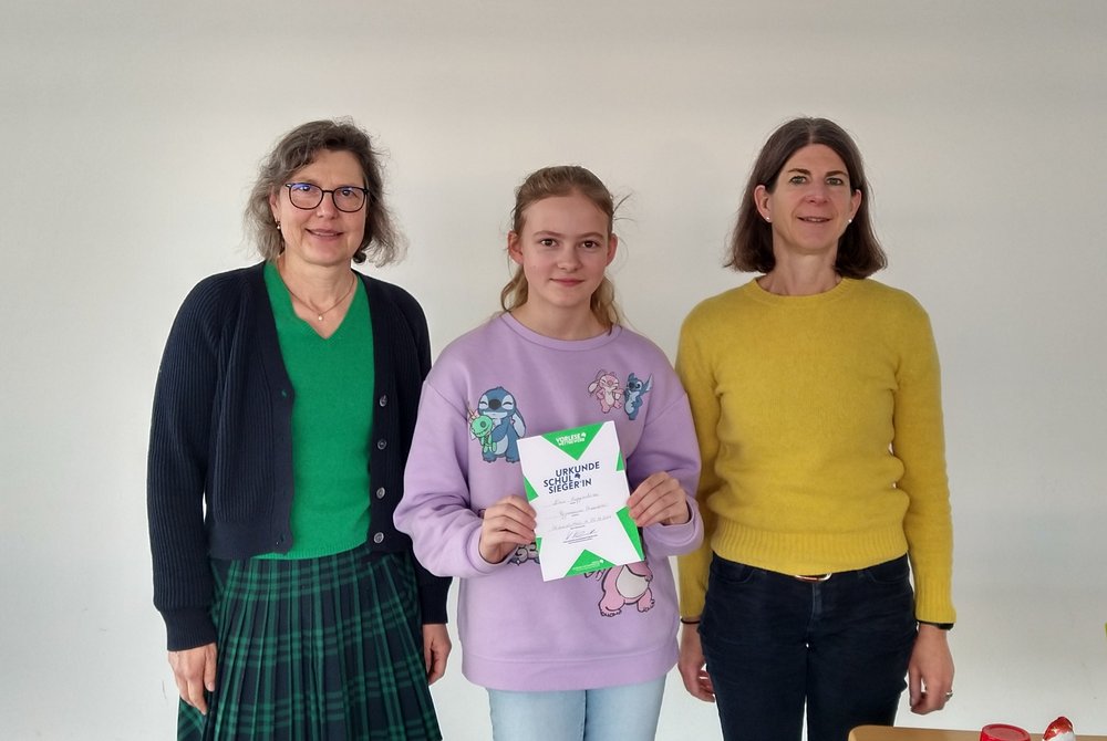 Die Siegerin des Vorlesewettbewerbs 2024 ist Nora. Sie las hervorragend aus dem spannenden Roman „Mitternachtskatzen“ vor und lag in der Endabrechnung mit wenigen Punkten vor Silan und Lotta. Nora ist somit für die zweite Runde, den Regionalentscheid der Schulen, qualifiziert und wird das Gymnasium Himmelsthür vertreten. Herzlichen Glückwunsch!