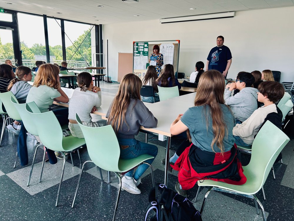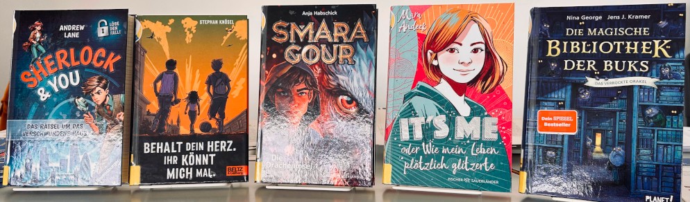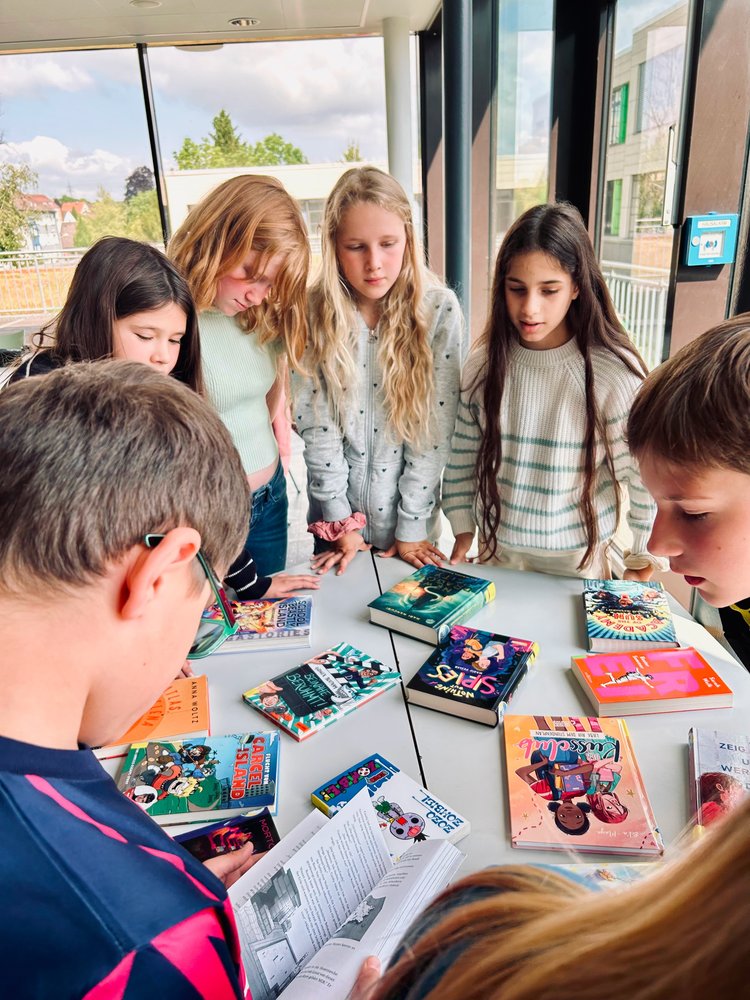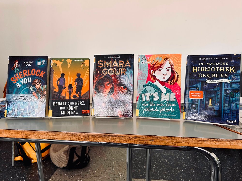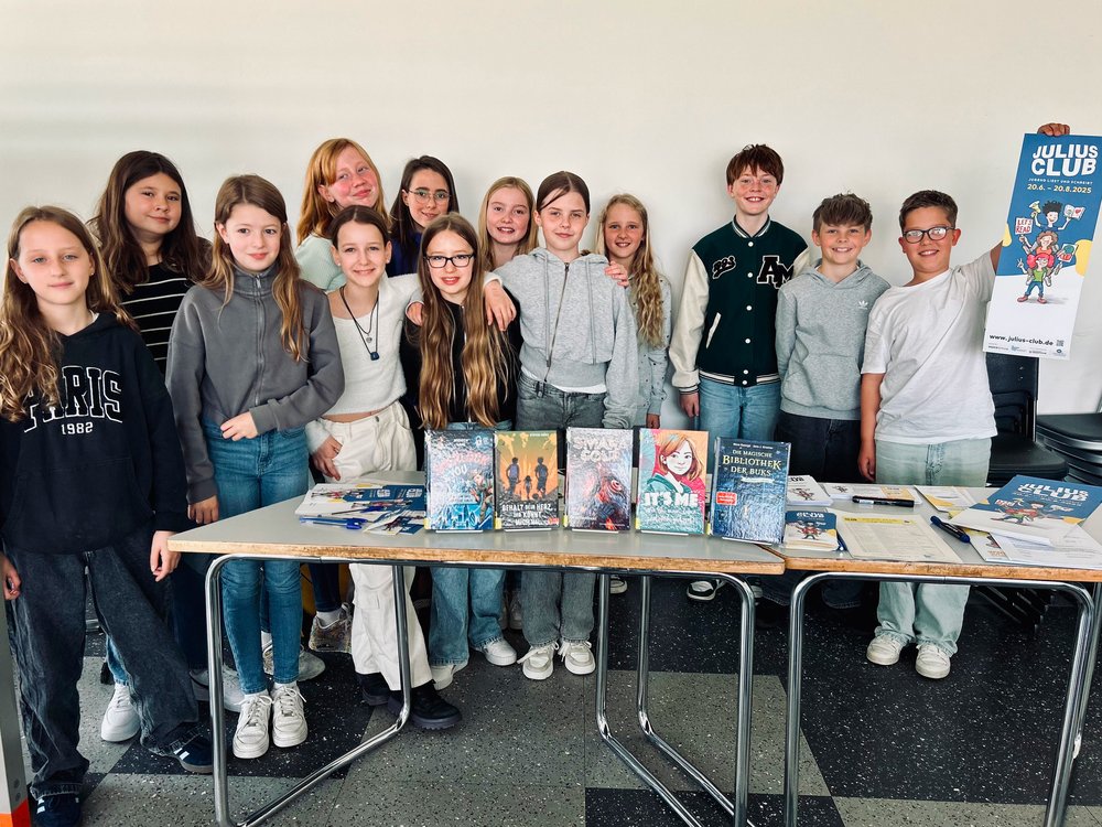 Im Juni bekamen unsere 5. und 6. Klassen jeweils Besuch von zwei Mitarbeiter*innen der Stadtbücherei, die den Schüler*innen im Rahmen des Julius-Clubs (Jugend liest und schreibt) aktuelle Jugendbücher auf originelle Weise präsentierten. Das Besondere dabei: Die Fünft- und Sechstklässler*innen durften in die Rolle von Juroren schlüpfen und am Ende der jeweiligen Doppelstunde ein Siegerbuch küren.