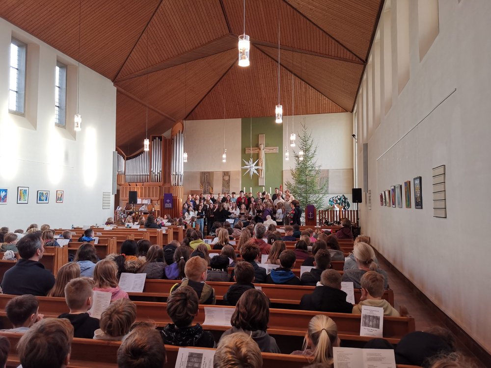 Die Kollekte, eingeleitet vom Gemeindegesang „O, du fröhliche“ unter Begleitung des Bläserkreises, erbrachte am Ausgang 129,45 € für den Guten Hirten.