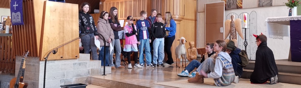 Der Religionskurs der 6a von Frau Güttler inszenierte, wie der Teufel die Hirten auf ihrem Weg zur Krippe ablenken wollte. Die mexikanische Erzählung zeigte, wie dieser Master of Desaster immer wieder ein Ankommen bei Gott blockieren will. Es sind immer wieder die Sorgen, aber auch Freuden des Alltags, die einen vom Fokus auf das Wesentliche, die Liebe, temporär abbringen können.