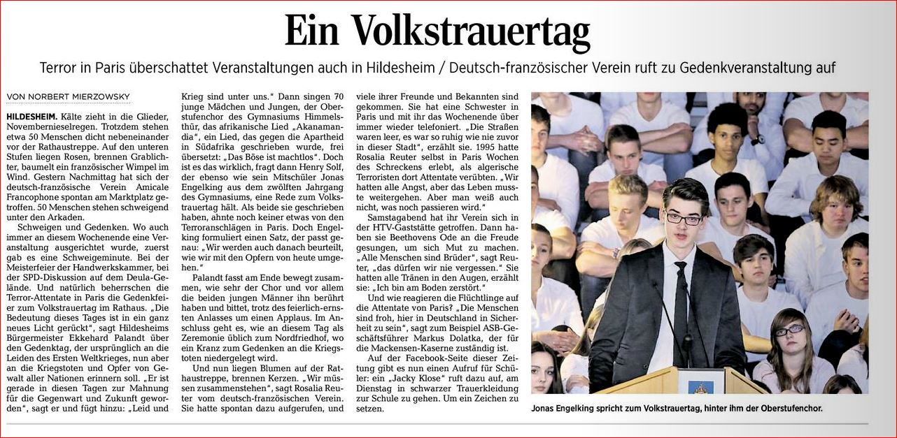 Auch in der Hildesheimer Allgemeinen Zeitung vom 16.11.15 sind wir lobend erwähnt!