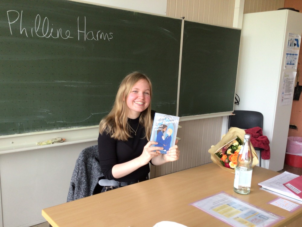 September 23rd, 2021, we were visited by a young author named Philine Harms who is from Hildesheim. At the beginning of the reading, Philine Harms introduced herself before she started talking about how she came into writing novels and finally publishing her first book.
