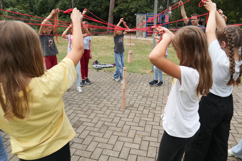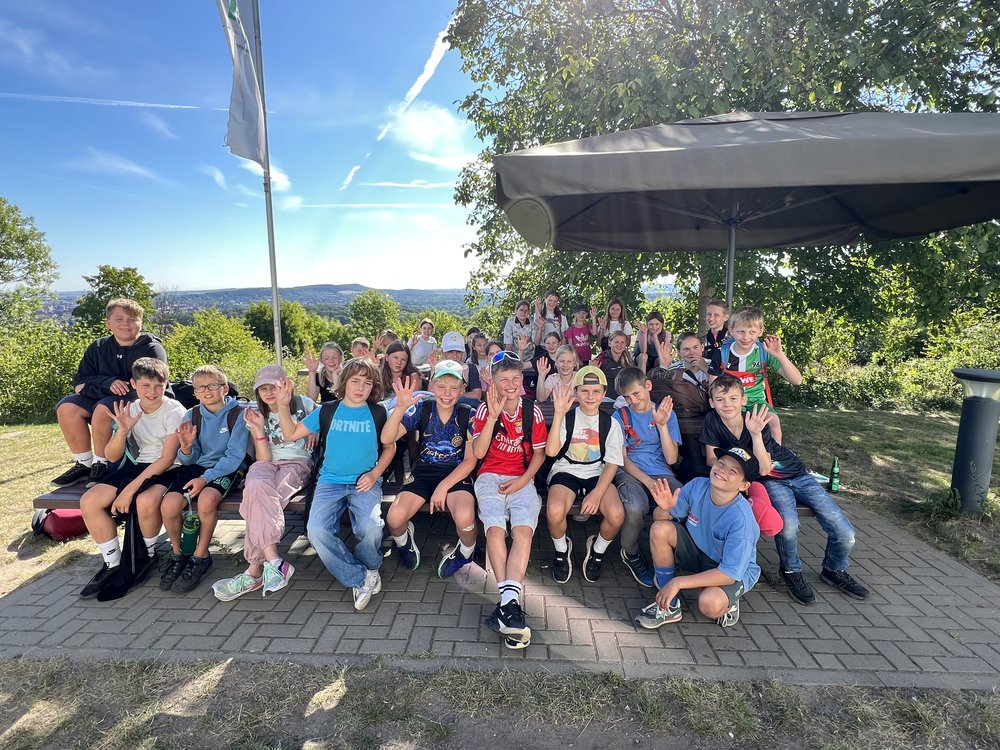 Wir, die neuen 5. Klassen am GymHim und die zugehörigen Lehrerteams, haben unsere erste gemeinsame Tour erfolgreich gemeistert. Am Vormittag hatten wir jede Menge Spaß bei ArsSaltandi. Dabei haben wir uns besser kennengelernt und unsere Kooperation in Form von Spielen gestärkt. Wir sind im Mattenrutschen gegeneinander angetreten, haben geschwitzt und viel gemeinsam gelacht. Nach dem leckeren Mittagessen in der Mensa machten wir uns auf den Weg zur Jugendherberge. Auf der Wanderung haben wir viel miteinander geredet und neue Freundschaften geknüpft. Auf dem Gelände der Jugendherberge spielten wir dann Verstecken, Fußball, Volleyball und Tischtennis. Das Beste waren die gemeinsamen Aktionen mit den Patenschüler*innen. Zum Abschluss kamen die Eltern und es gab Gegrilltes und Salate. Am nächsten Tag kamen wir müde, aber auch mit vielen neuen Eindrücken zurück zur Schule.